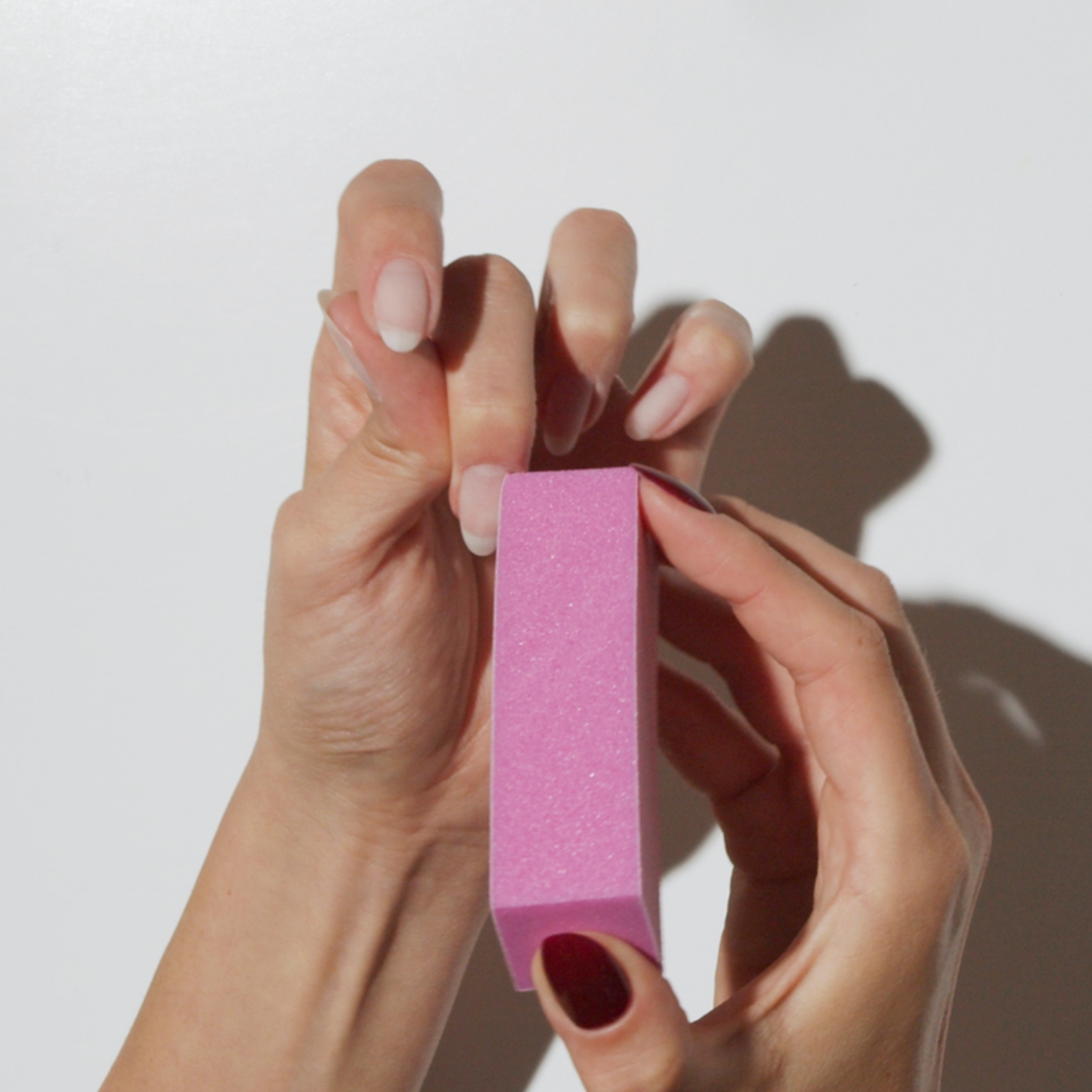 Buffing not only smoothes the nail surface, it allows for better Base Coat adhesion by creating a subtle texture on the surface of the nails.